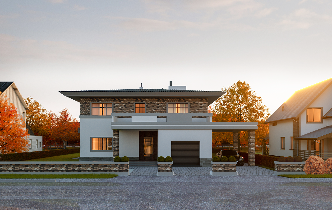 Зібравши усі ідеї для майбутнього дому з якими до нас звернулись замовники, почався процес проектування. Згідно усіх заданих критеріїв, ми створили двоповерховий будинок з гаражем, підвалом та великим подвір’ям.
